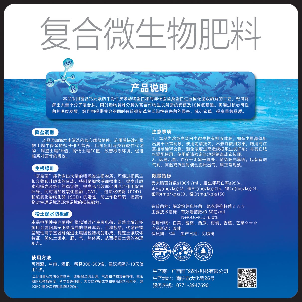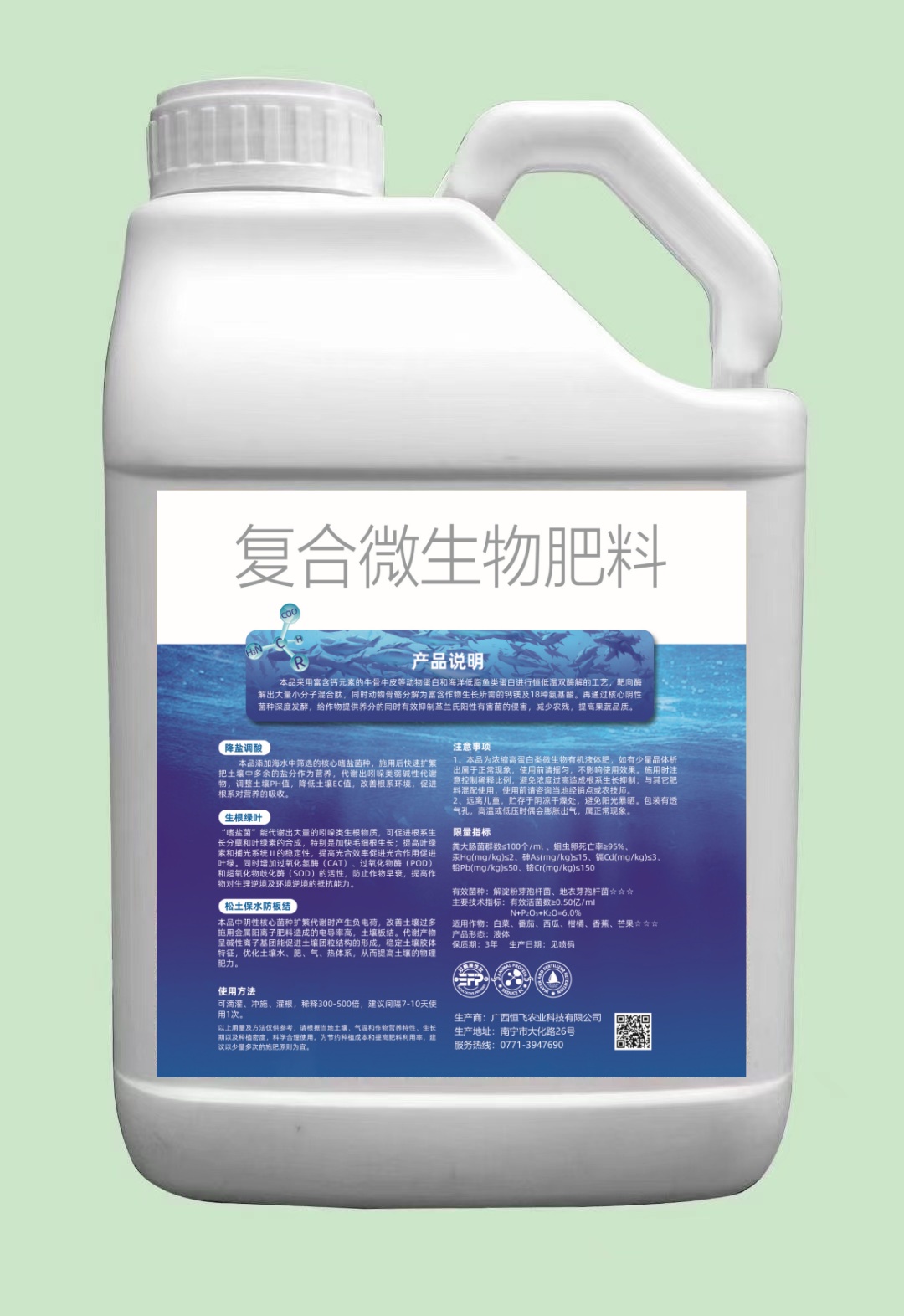 主要技術(shù)指標(biāo):有效活菌數(shù)≥0.50億/ml、N+P205+K20=6.0%