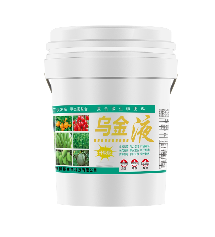 四菌合一三級發(fā)酵甲殼素螯合 烏金液是用優(yōu)質(zhì)腐植酸和氨基酸母液,根據(jù)微生物學(xué)原理,科學(xué)植入枯草芽孢桿菌和膠質(zhì)芽孢杄菌等多種有益菌群,精選具有補(bǔ)鉀、解鉀、解磷、抗病、増產(chǎn)等特殊功能的中微量元素,采用國際領(lǐng)先的搪瓷反應(yīng)釜螯合而成濃縮高效肥料。